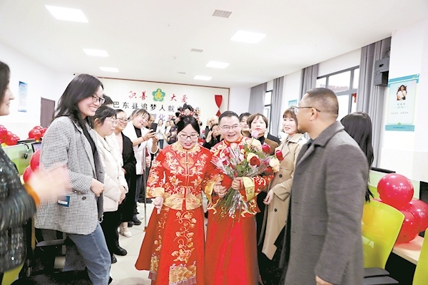 这种深深的遗憾很快触动了当地相关部门。巴东县残联、妇联、慈善总会和残疾人立即配合,决定利用残疾人就业技能培训班的时间,为他们秘密准备一场专属婚礼。于是,45位“妈妈家属”布置的温馨礼堂,充满了欢声笑语。